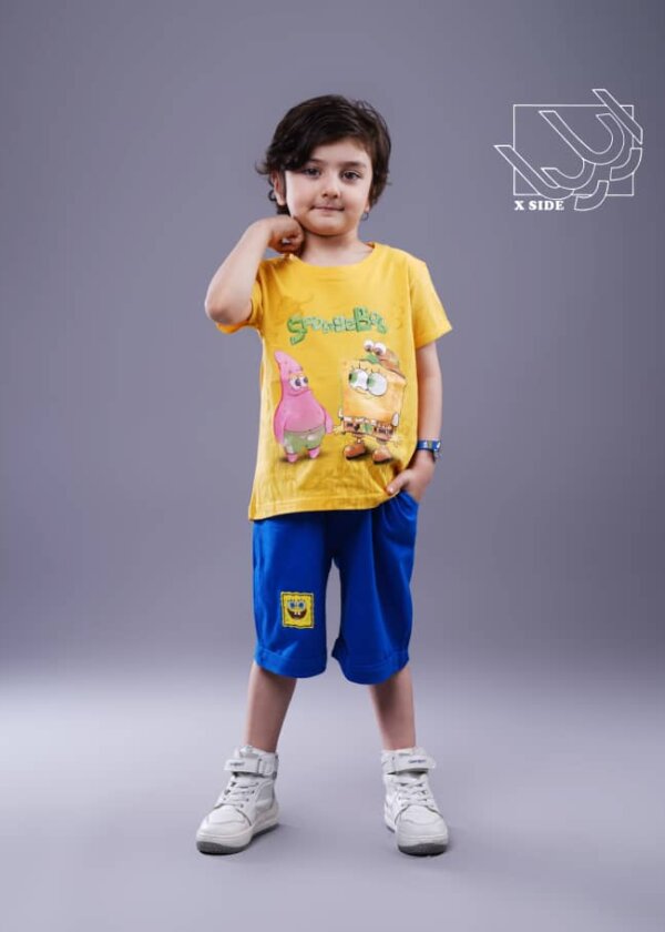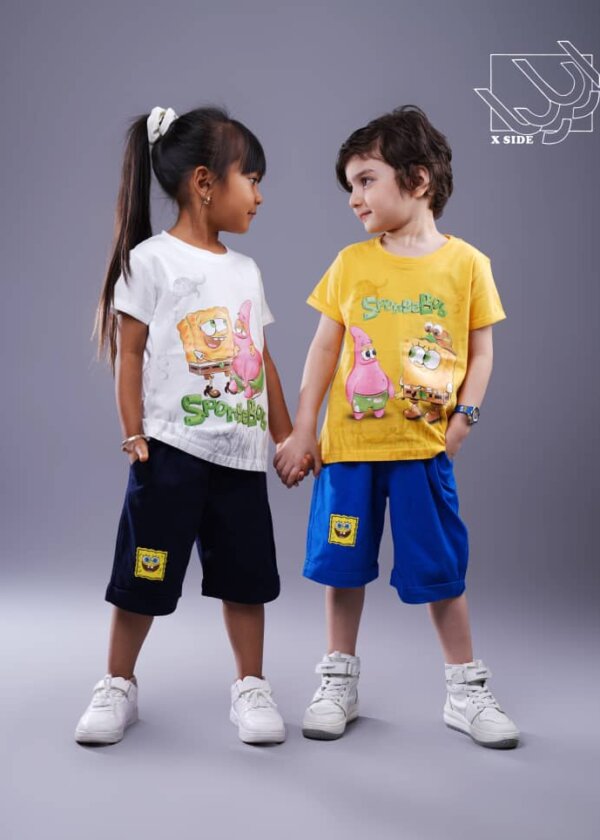 ست تیشرت و شلوارک اسپورت دخترانه و پسرانه بهاره با طرح باب اسفنجی