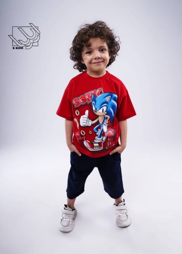ست تیشرت و شلوارک پسرانه بهاره با طرح سونیک