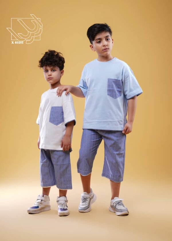 ست بلوز ساده و شلوارک راه راه بهاره پسرانه
