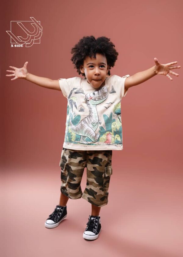 ست بلوز و شلوارک چریکی بهاره پسرانه با طرح دایناسور