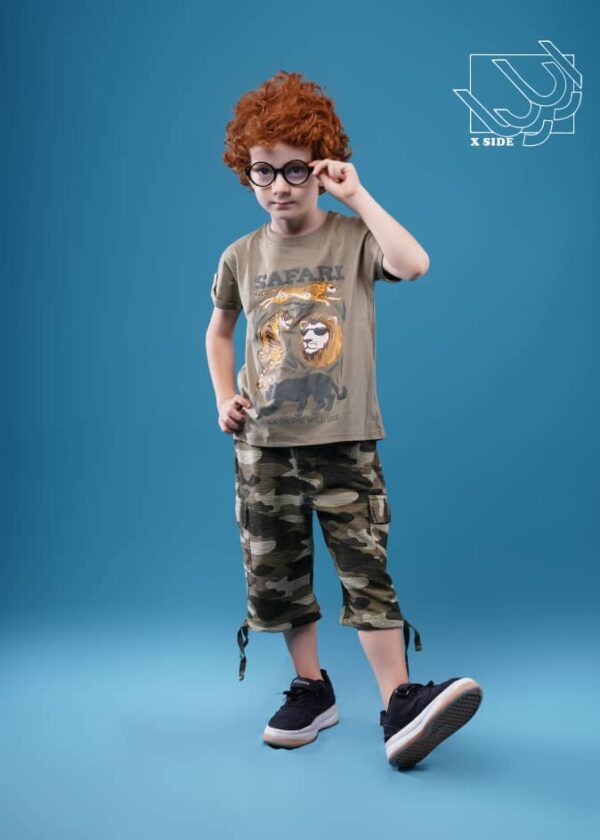 ست بلوز و شلوارک چریکی بهاره پسرانه با طرح شیر و ببر