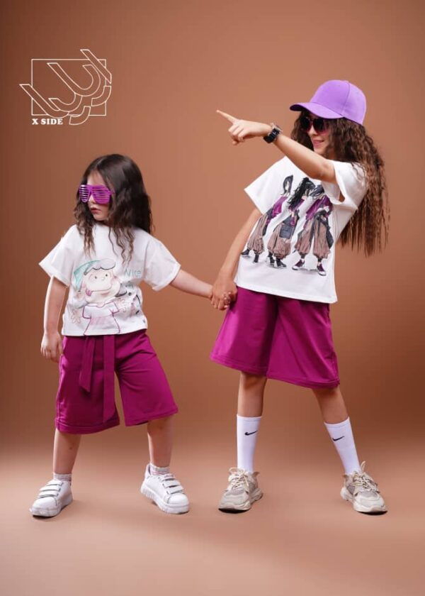 ست کراپ و شلوارک بهاره دخترانه با طرح سه دختر
