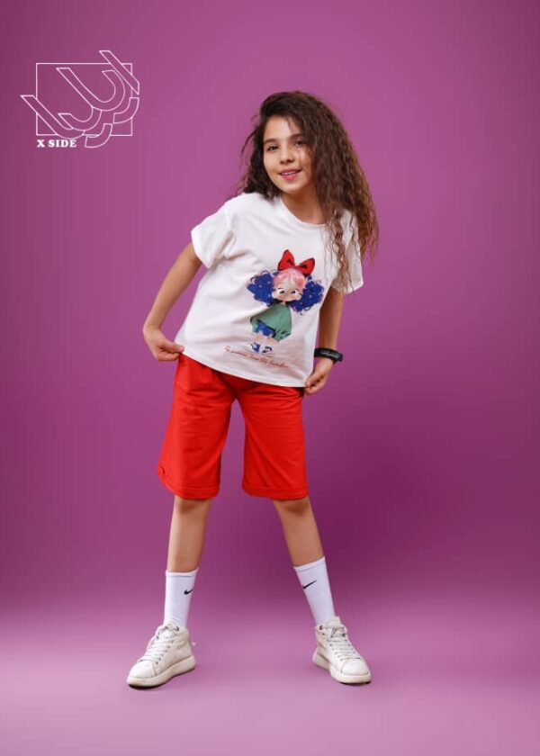 ست کراپ و شلوارک دخترانه بهاره با طرح دختر مو فرفری
