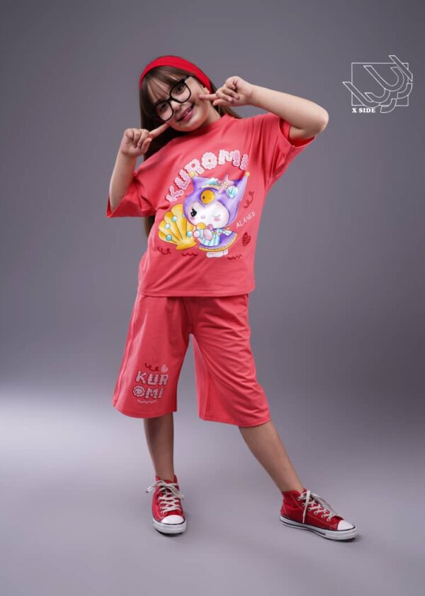 ست تیشرت و شلوارک دخترانه بهاره با طرح کرومی