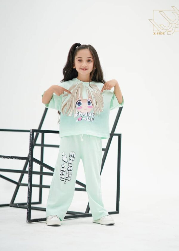 ست کراپ و شلوار دخترانه بهاره با طرح انیمی