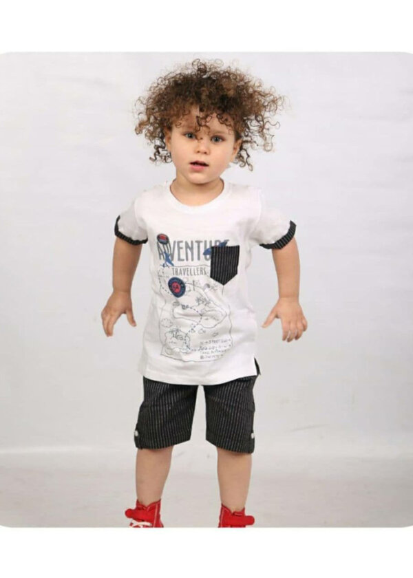 ست بلوز آستین کوتاه و شلوارک راه راه پسرانه