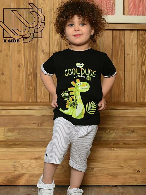 ست بلوز و شلوارک پسرانه با طرح دایناسور