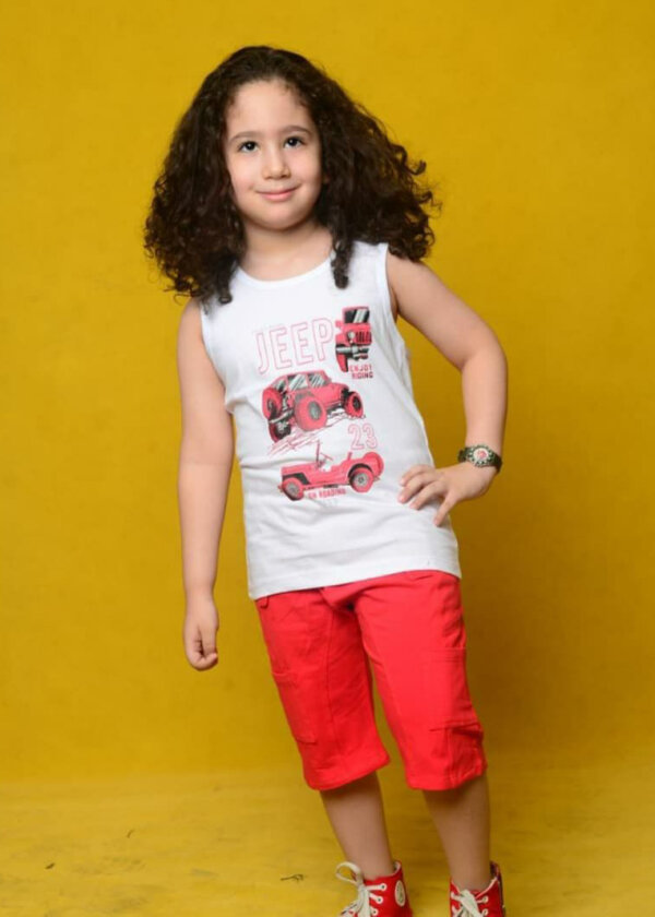ست تاپ و شلوارک پسرانه با طرح ماشین جیپ
