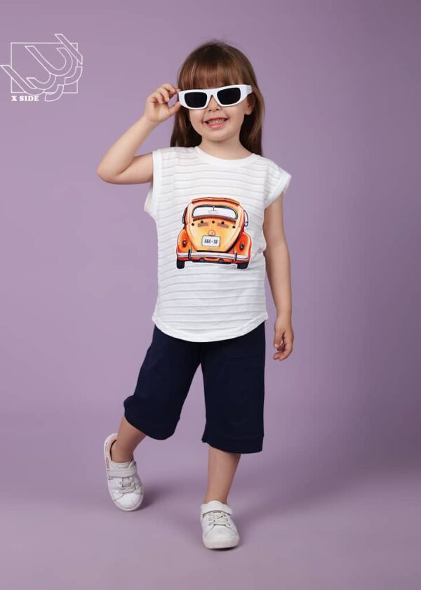 ست تی شرت آستین حلقه ای و شلوارک تابستانه با طرح فولکس