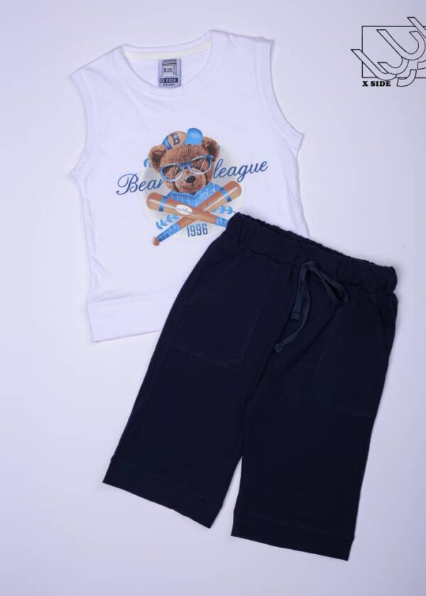 ست تی شرت آستین حلقه ای و شلوارک تابستانه با طرح تدی