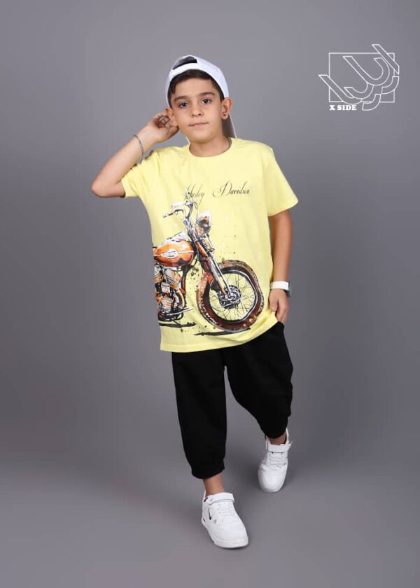 ست تیشرت و شلوارک بهاره پسرانه با طرح موتور سیکلت