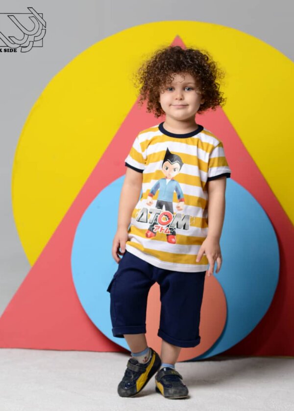 ست بلوز و شلوارک راه راه پسرانه با طرح اتم