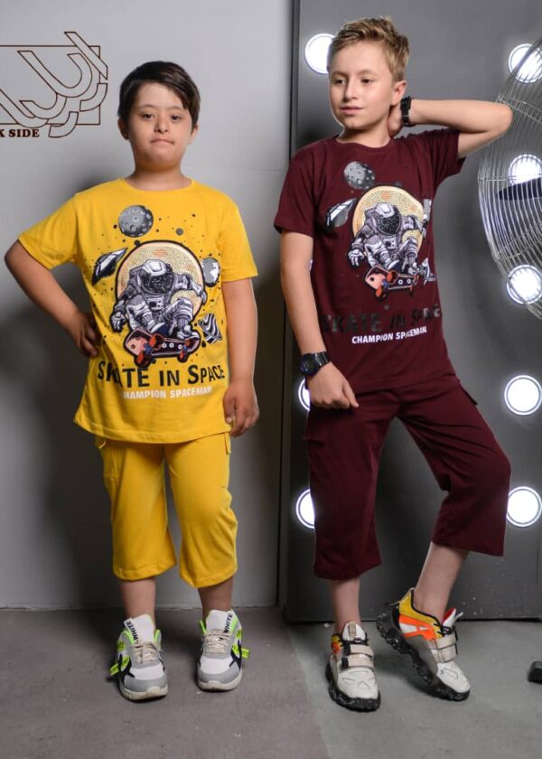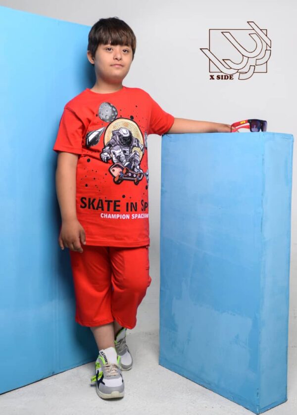 ست بلوز و شلوارک اسپورت پسرانه با طرح اسکیت