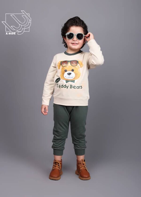 ست تی شرت آستین حلقه ای و شلوارک تابستانه با طرح تدی