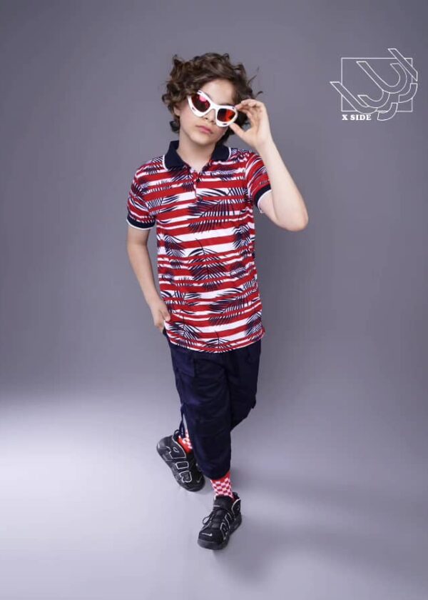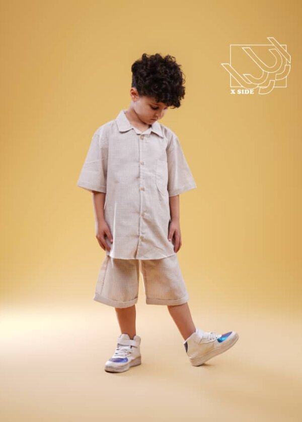 ست بلوز ساده و شلوارک راه راه بهاره پسرانه