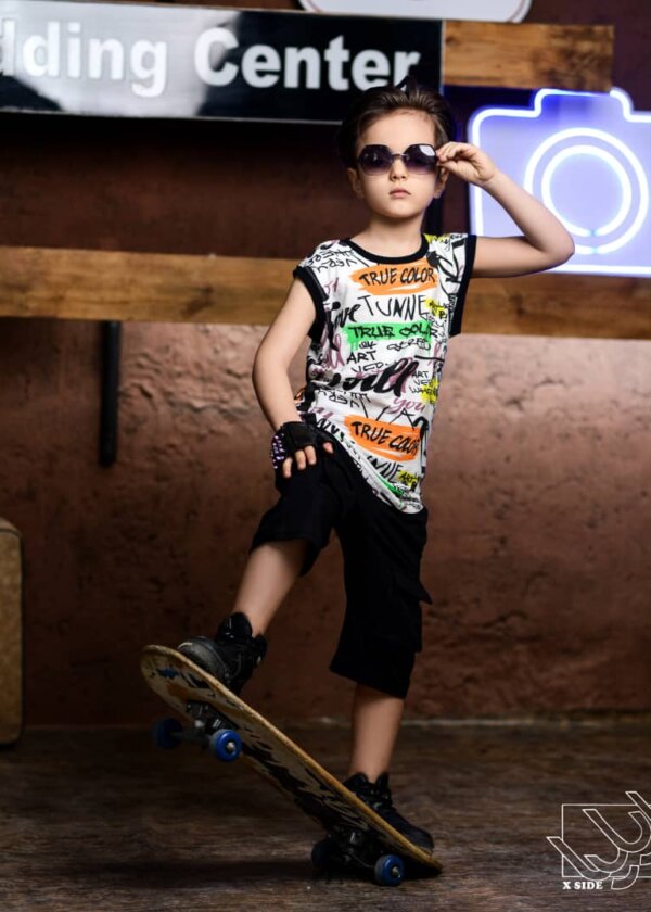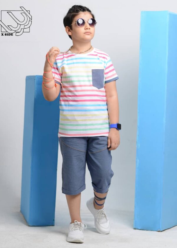 ست بلوز و شلوارک طرح جین پسرانه