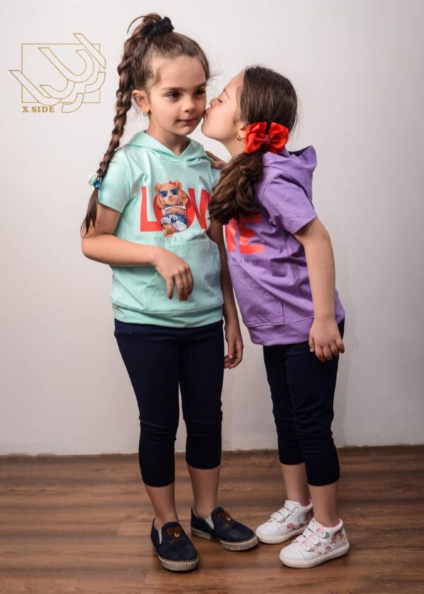 ست کراپ هودی کلاهدار و شلوار با طرح تدی