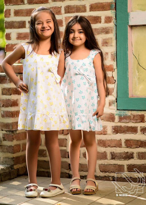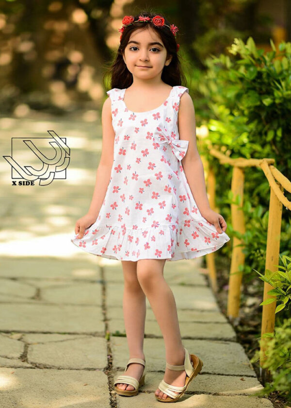 پیراهن نخی گلدار اشکی دخترانه بهاره